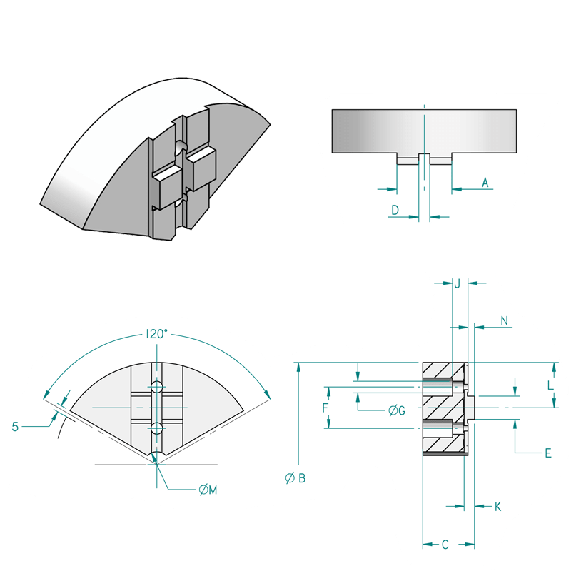 Les jeux de 3 mors doux enveloppants sur semelles à tenon sont utilisés sur des mandrins asservis et manuels pour serrer des pièces déjà usinées. Ils sont livrés prêts à être alésés aux diamètres des pièces que vous voudrez serrer.